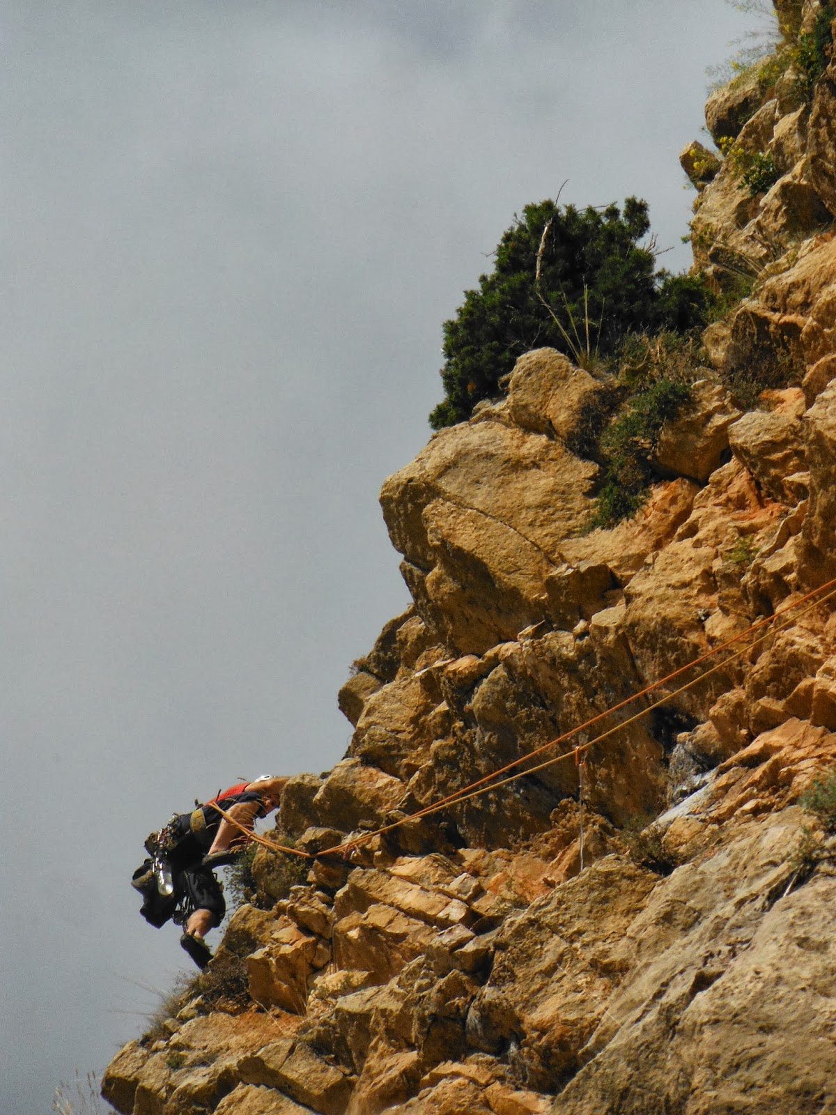 -Material: Algun tascó ( sobretot petits ) i un joc de friends des de l'Alien groc fins al Camalot del 2. El del número 3 només l'hem posat al final de la quarta tirada a un pam de l'espit.