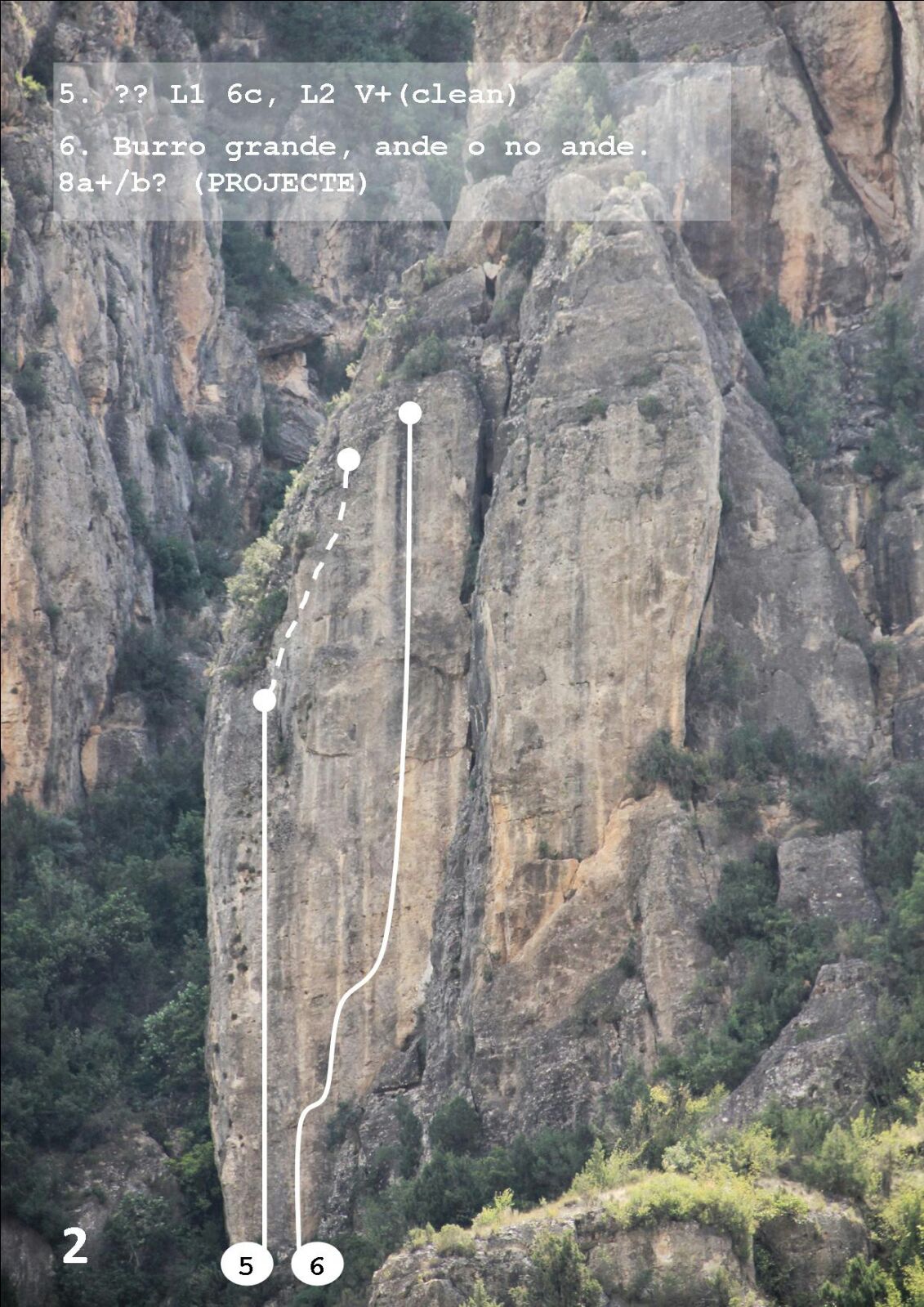 Segons a l'alçada que haguem aparcat de la pista ens caldrà caminar per la mateixa més o menys estona.En un revolt a dretes cal deixar la pista i agafar una traça que va flanquejant per sota les parets,esquerra.Trobarem algunes fites i anirem fent puja i baixes per bretxes,canals,cornisses i tarteres.